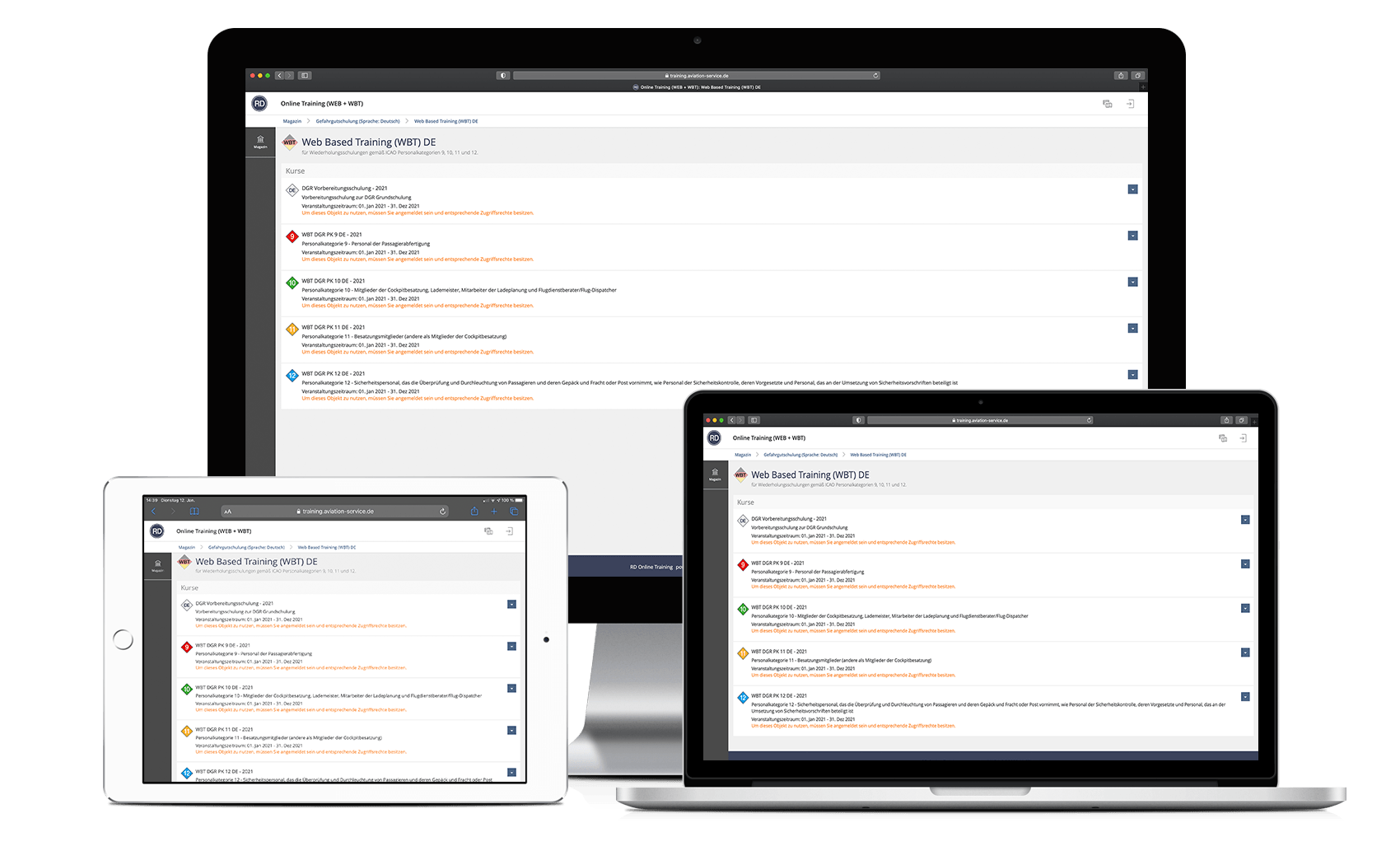 Auf unserer Online-Trainingsplattform bieten wir Ihnen Webinare (WEB) und Web Based Trainings (WBT) an, durch welches Sie Ihr Training in einer sehr flexiblen und kostengünstigen Weise absolvieren können, unabhängig von Zeit und Ort.
